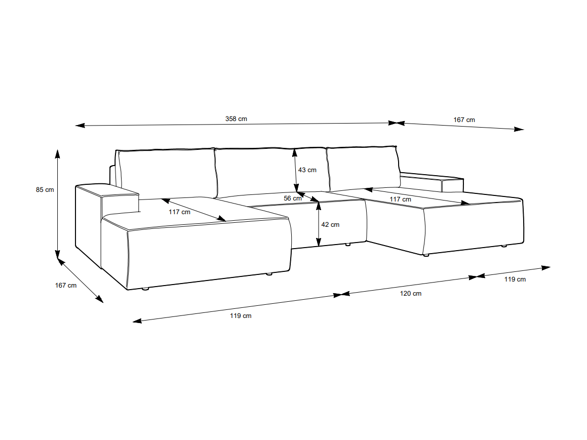 Stor panoramauhjørnesofa med chaiselong som sovesofa i tekstureret stof i blå AMELIA