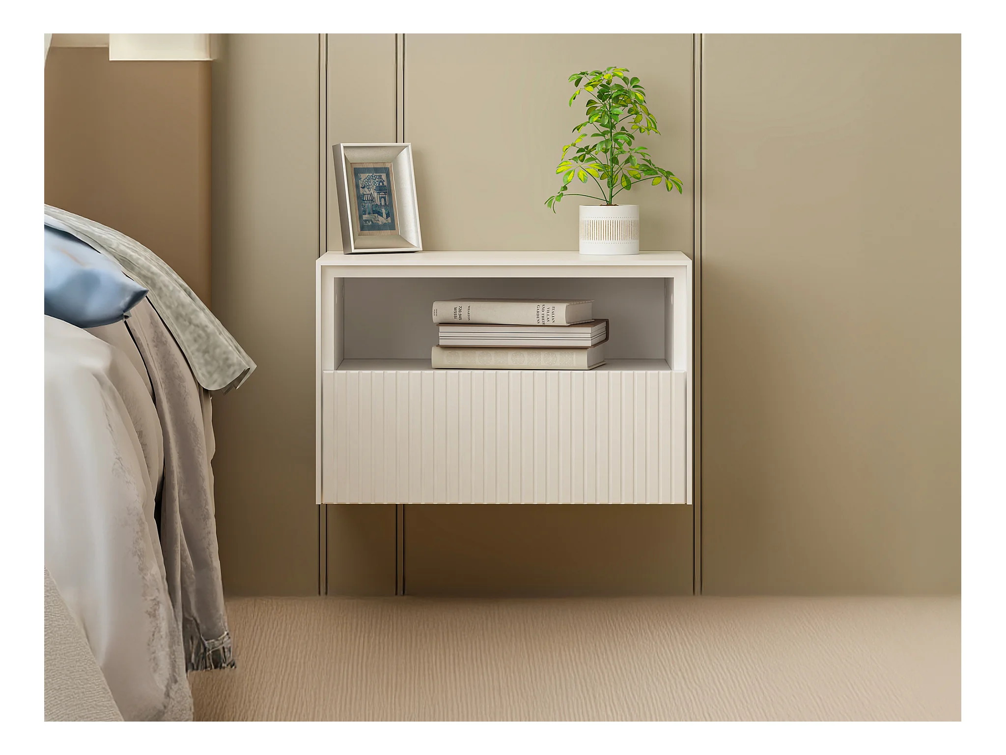 Sæt med 2 væghængte sengeborde - MDF - Hvid - CALDRIN fra Pascal Morabito