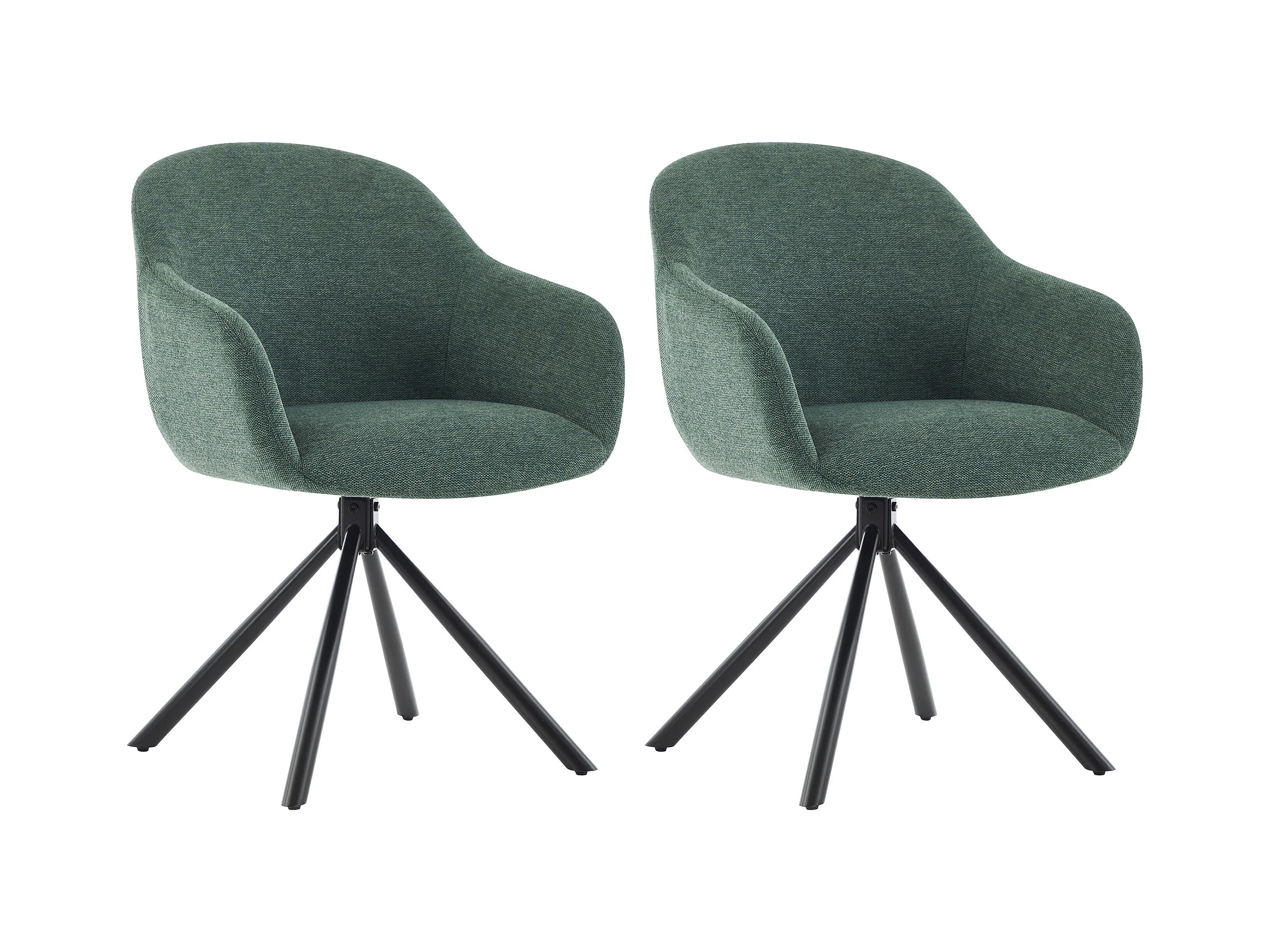 Sæt med 2 stole med armlæn i tekstureret stof og sort metal - Grøn - CILIENO