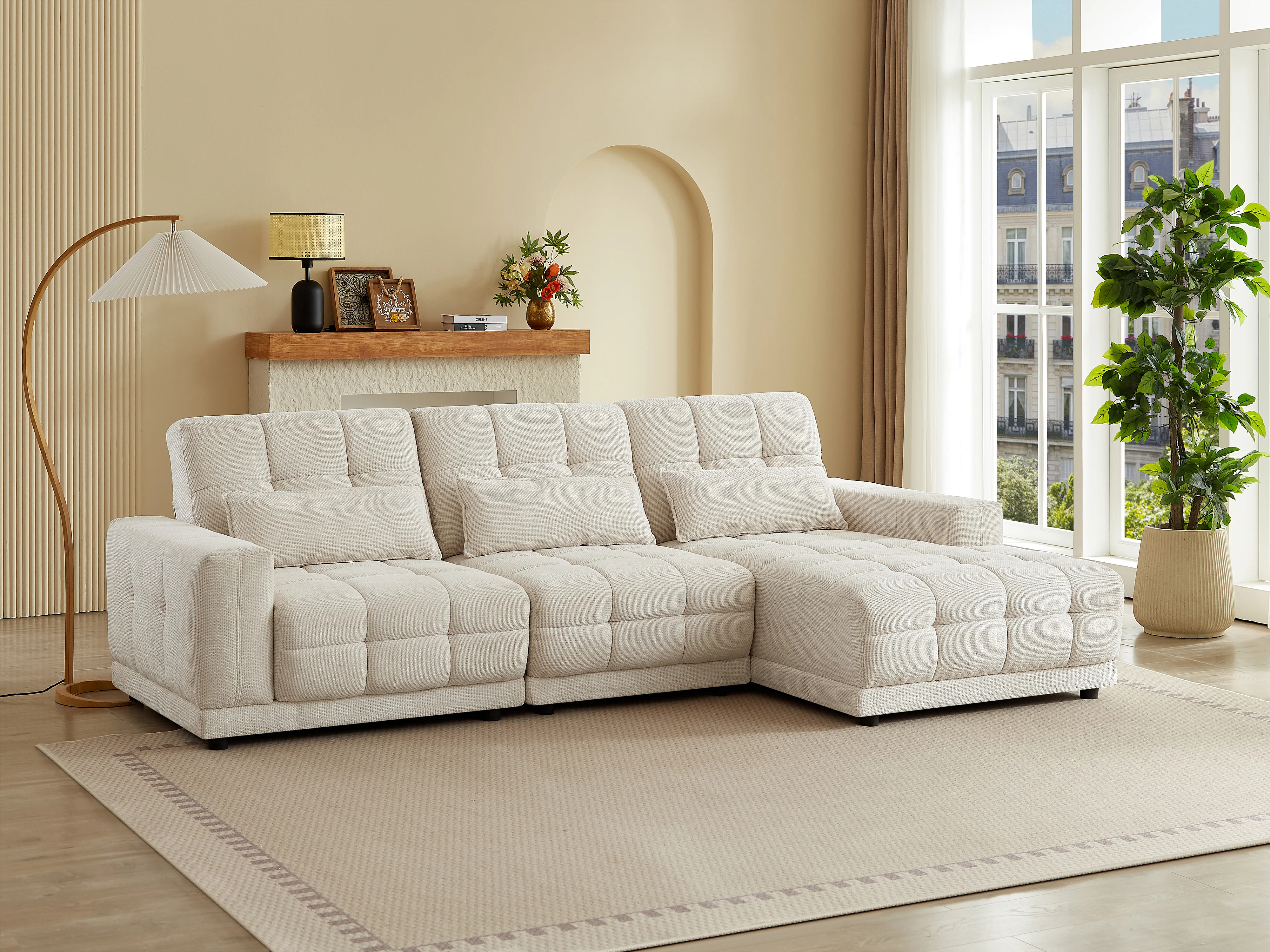 Hjørne-sofa med elektrisk afslappet stol i beige tekstil DOREA af Pascal Morabito