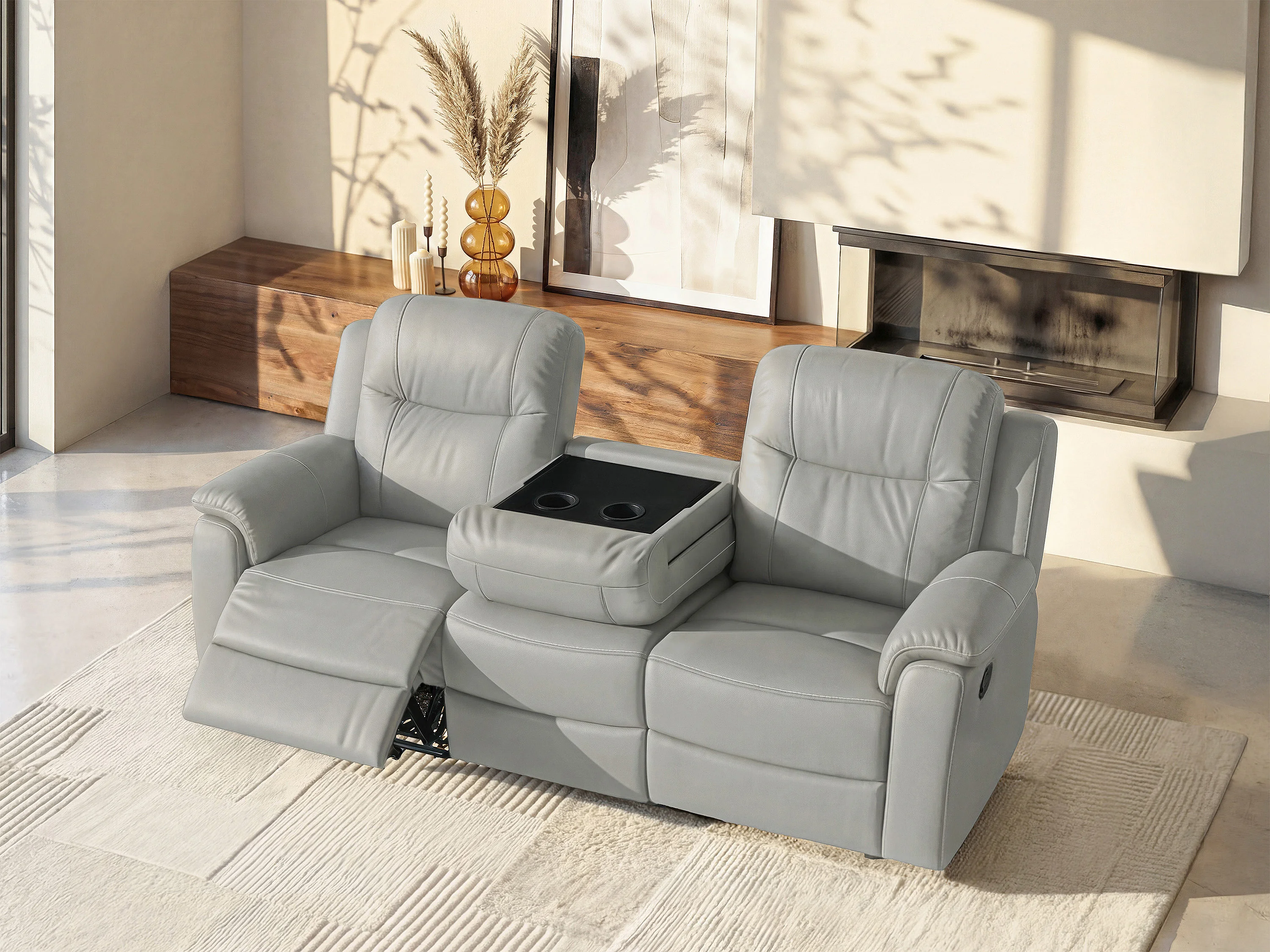 3-personers sofa med relax-funktion EVASION i læder - Lysegrå