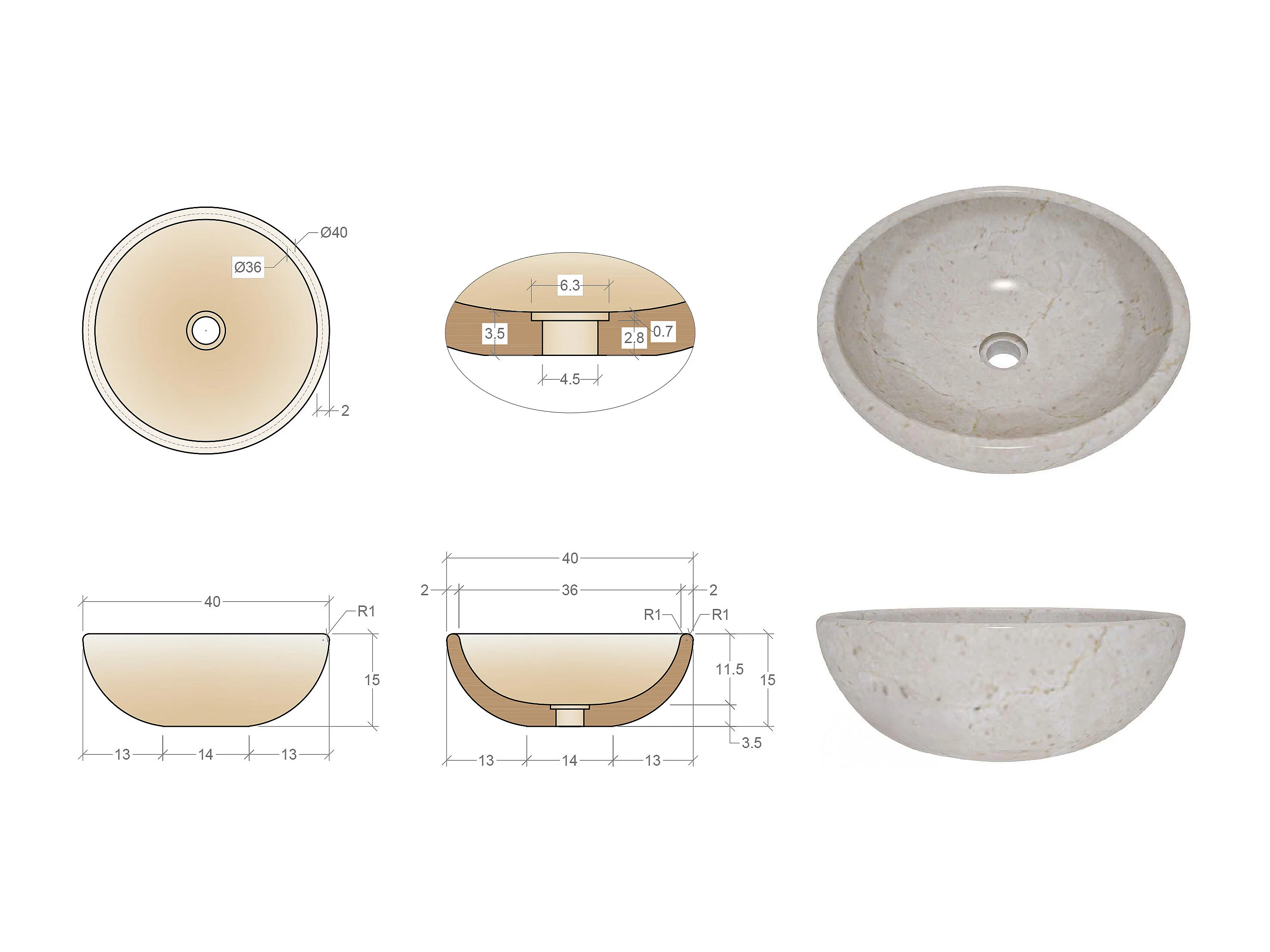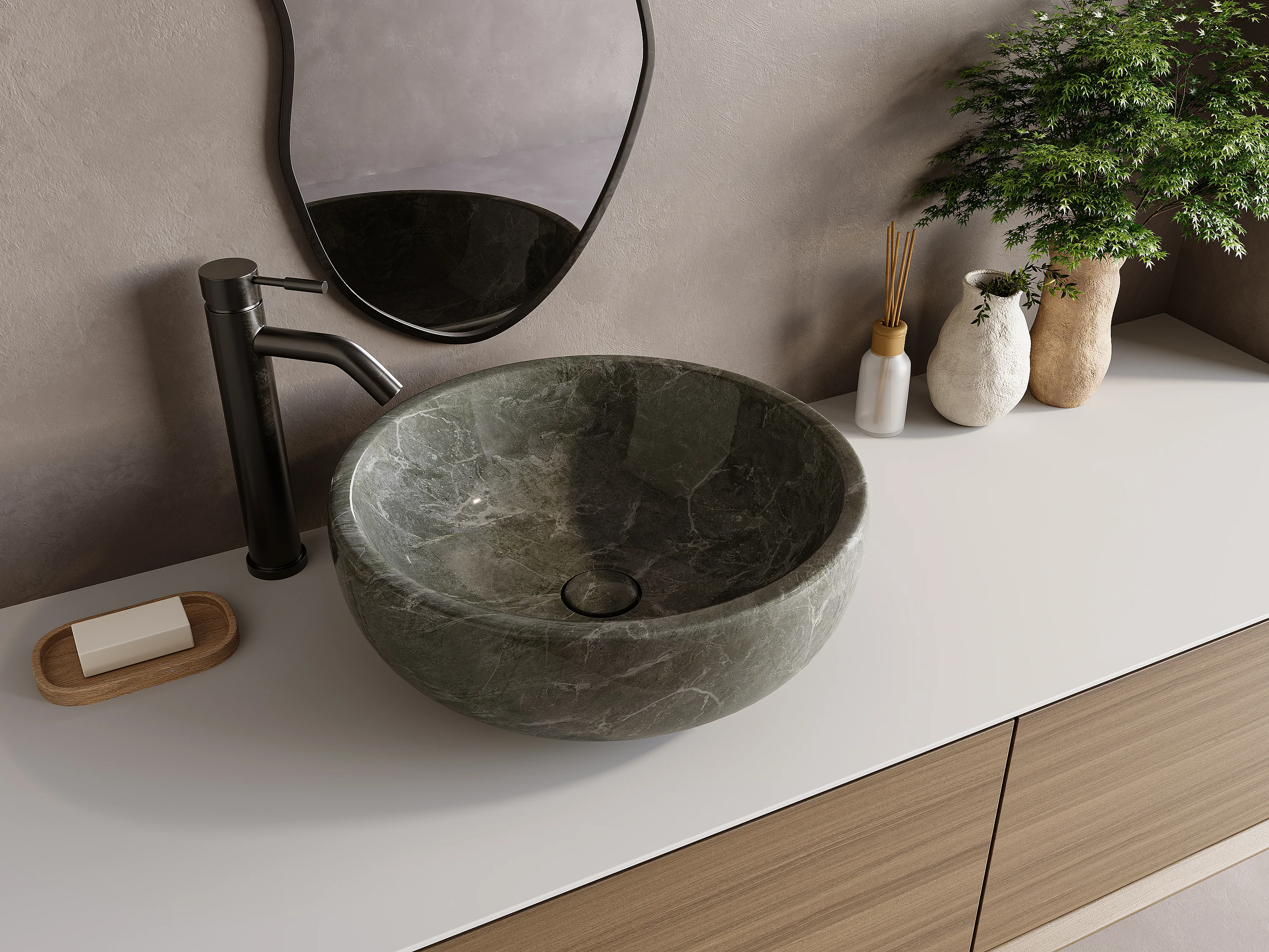 Vask til at sætte ovenpå i marmor - Sort farve - D40 cm - LAVINO