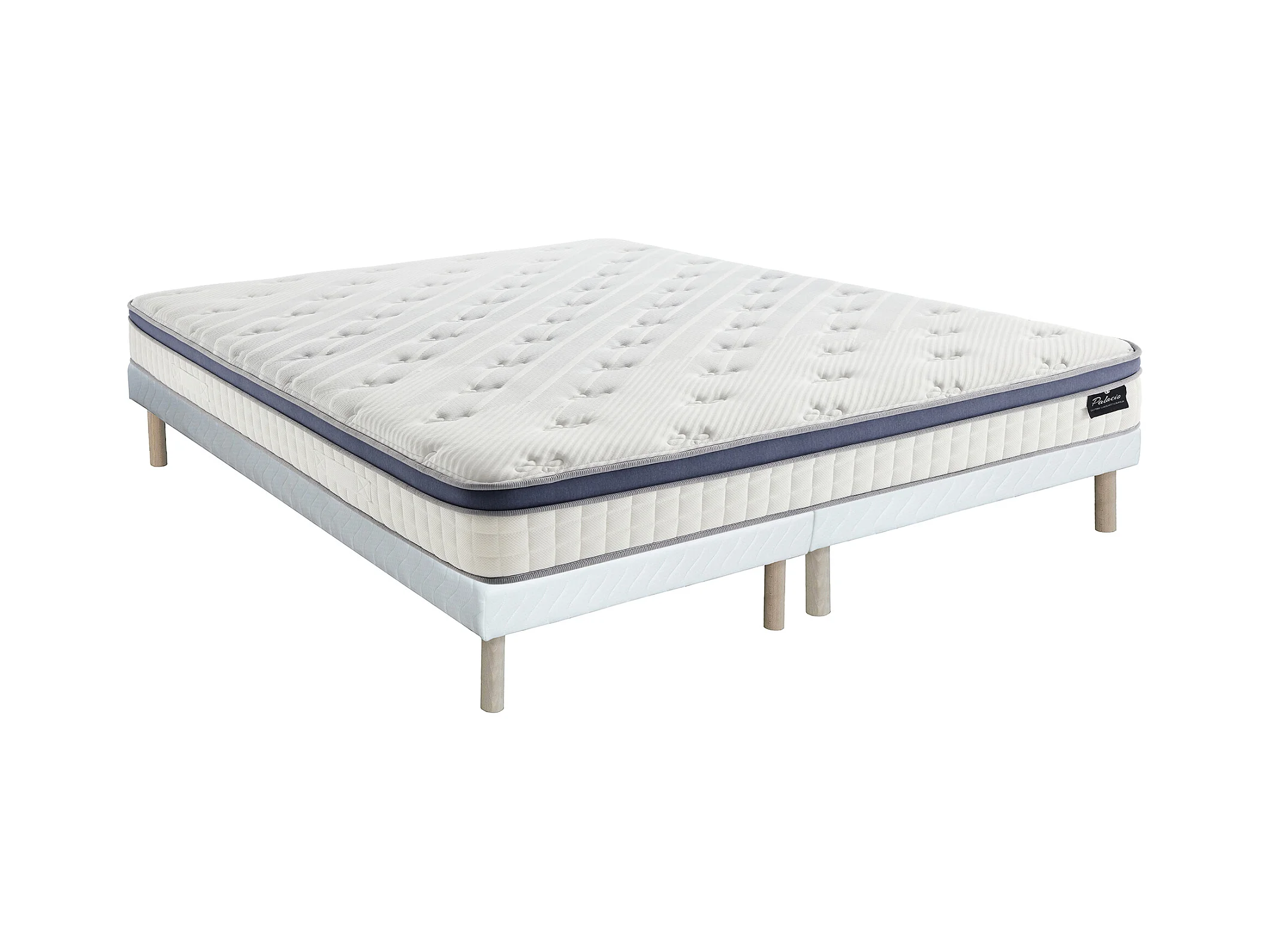 Sæt 180 x 200 cm polstret sengebund + hybridmadras med 7-zoners pocketfjedre, memory foam og latex, 25 cm tykkelse - MALAO fra PALACIO