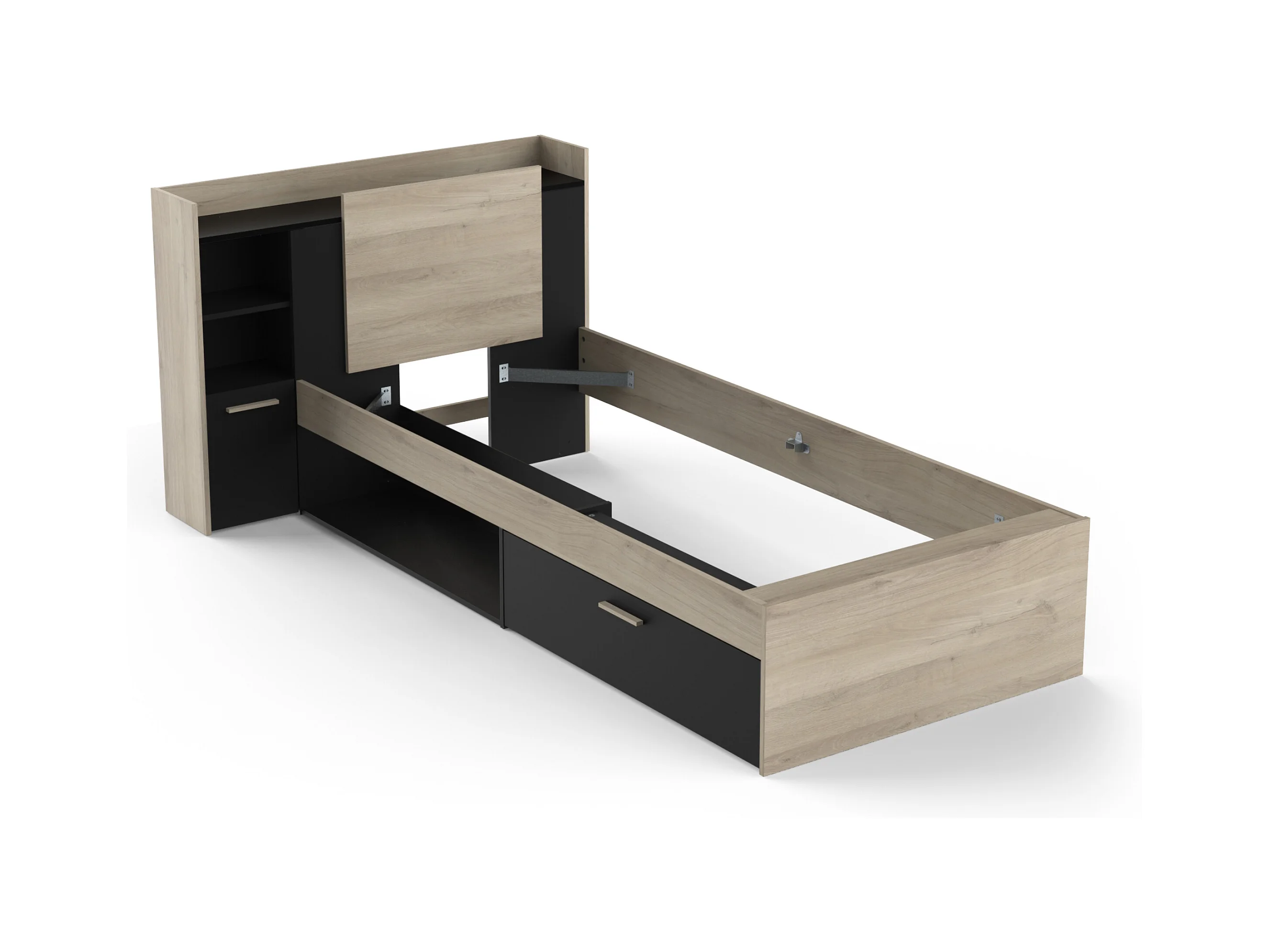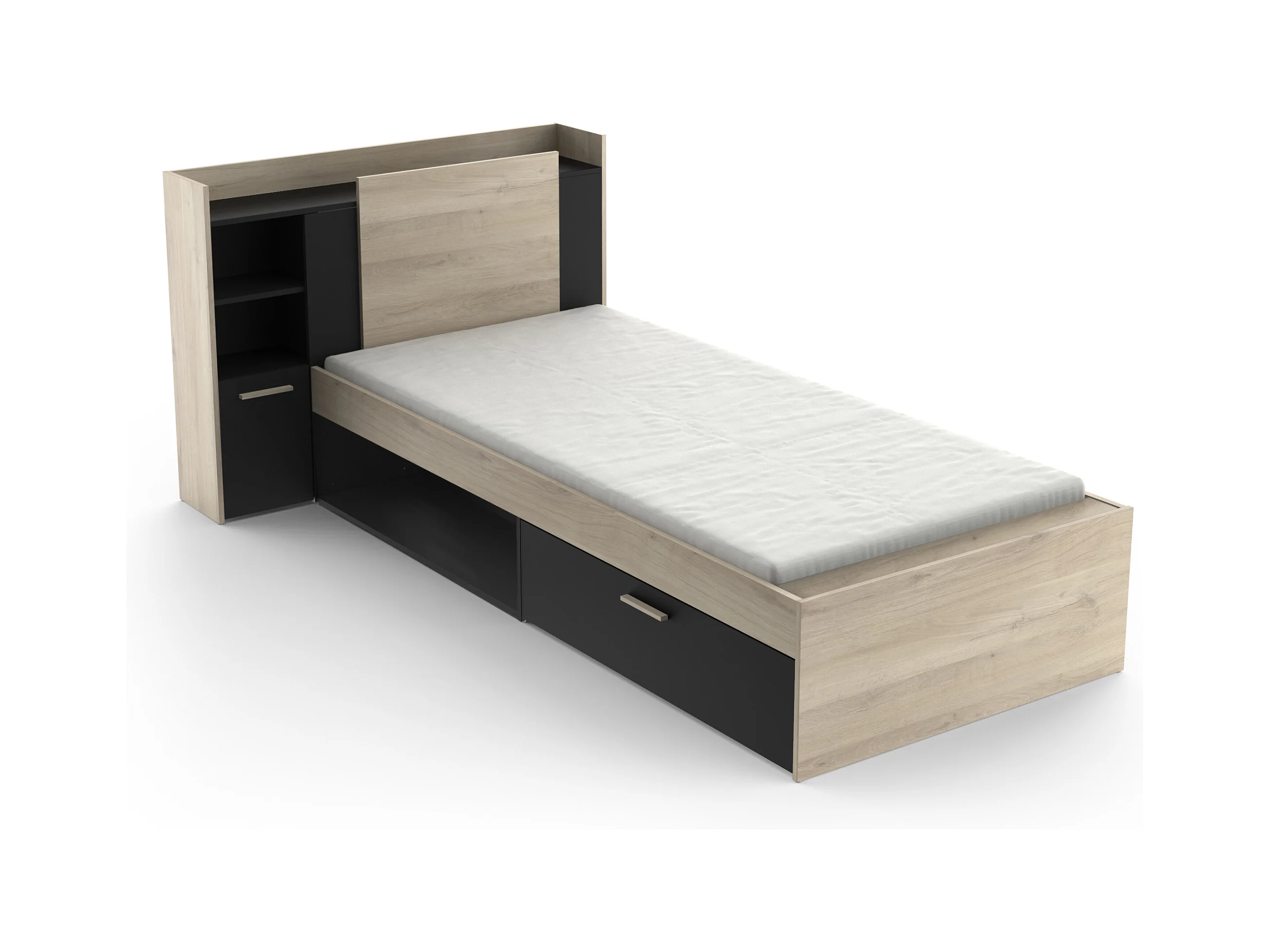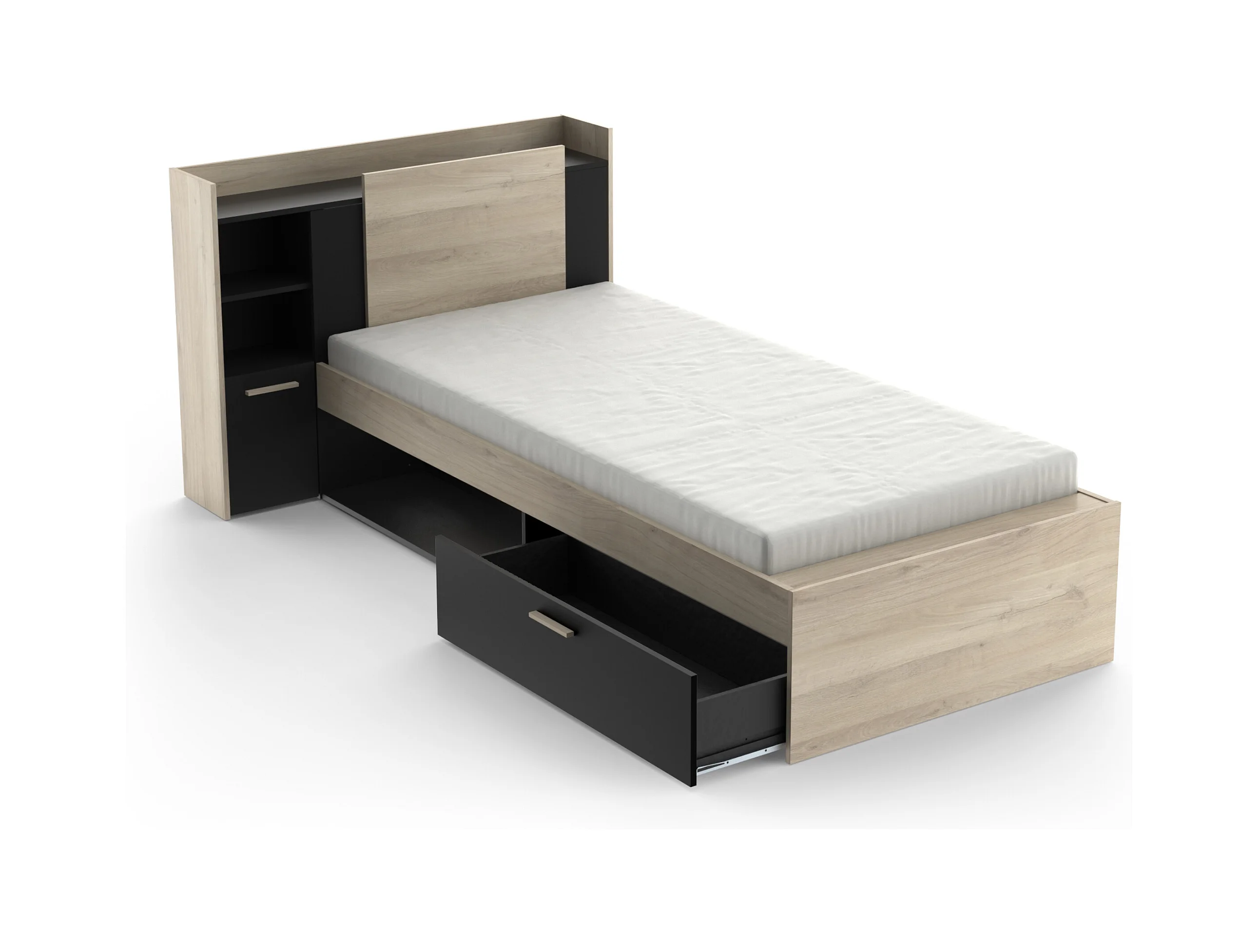 Justerbar seng 90 x 190/200 cm med opbevaring - Sort og natur - MARTELO