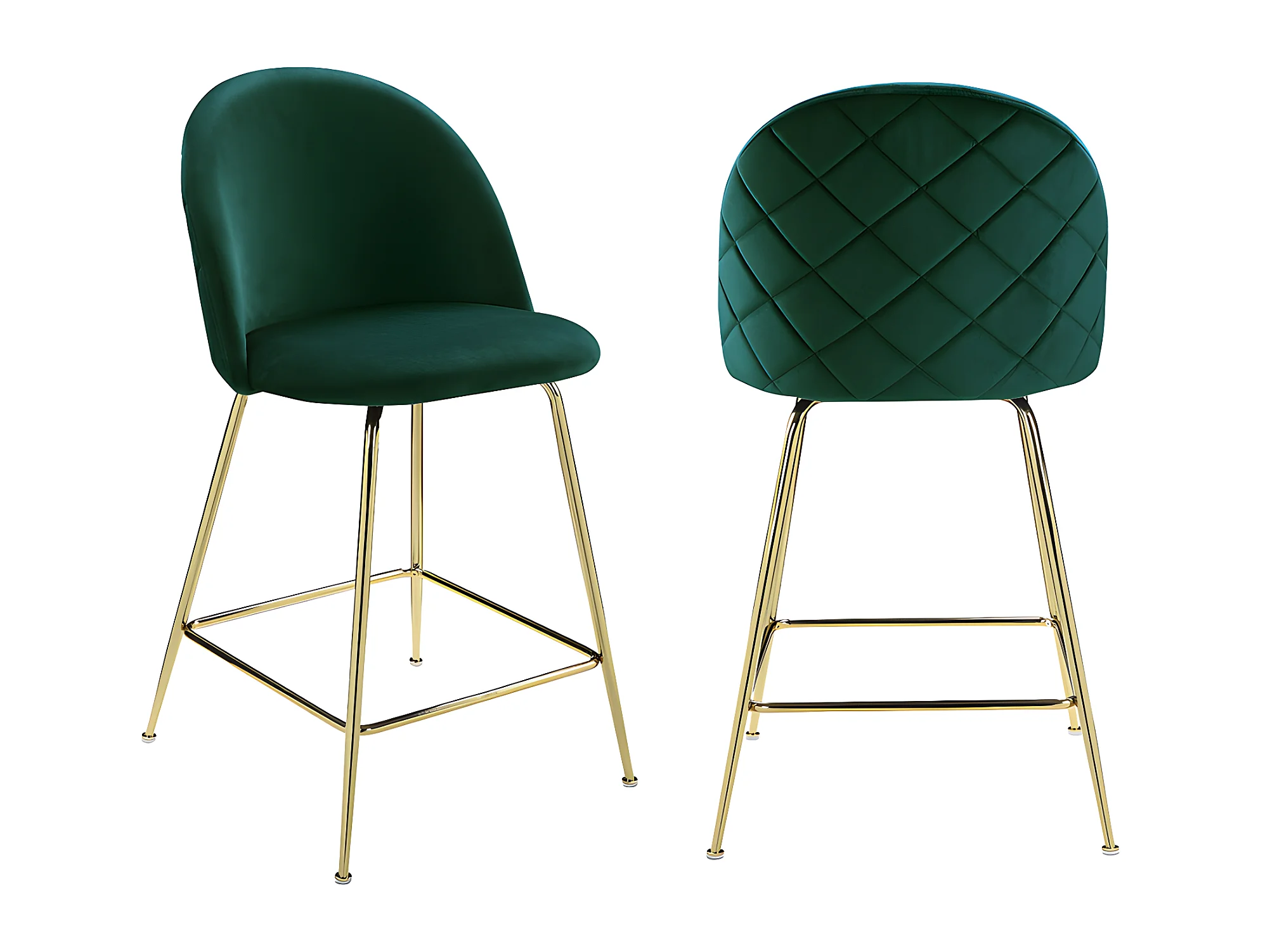 Sæt med 2 barstole i velour og forgyldt rustfrit stål - Grøn - MELBOURNE