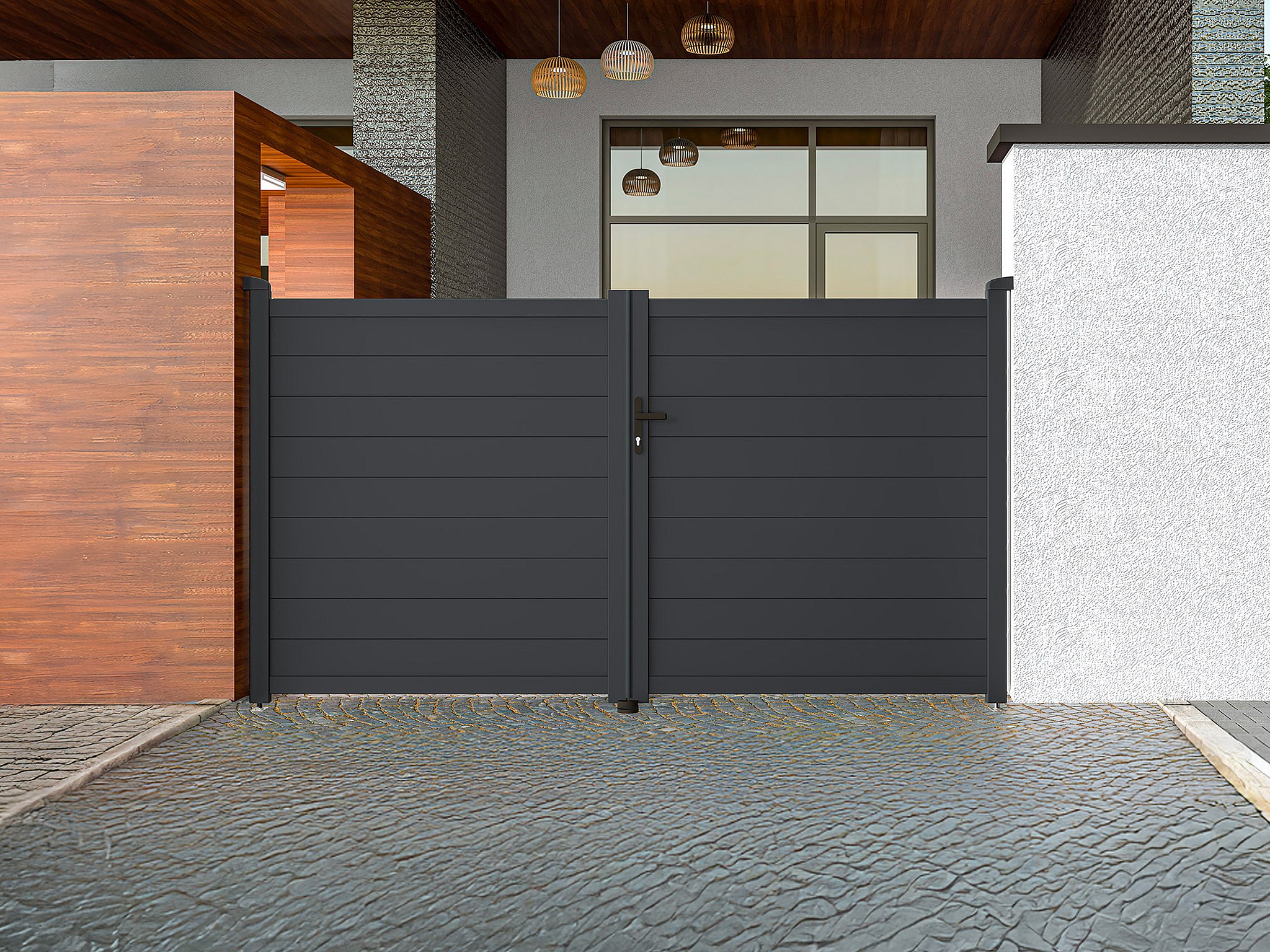Svingport i antracitgråt aluminium 305 x 166 cm NAZARIO