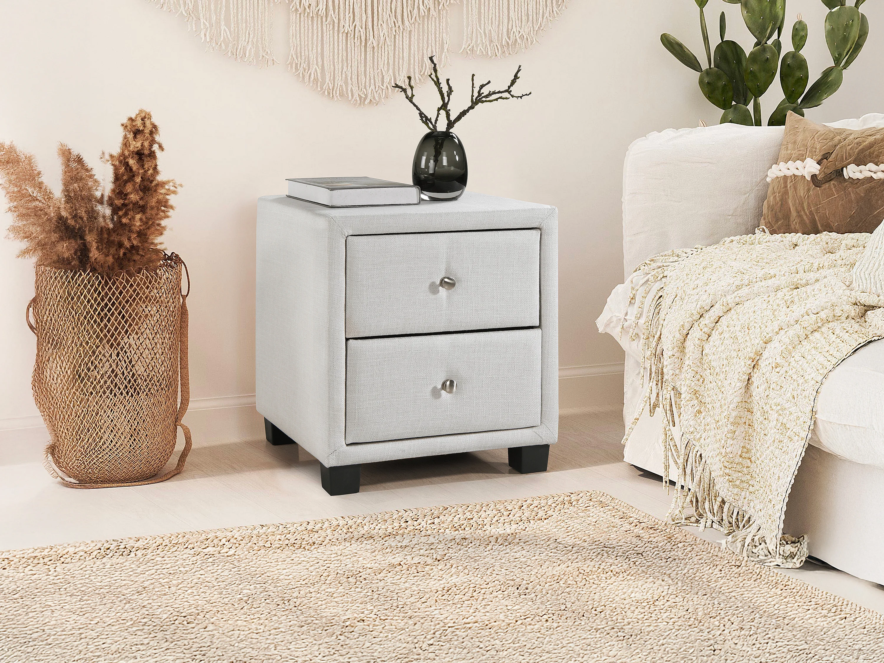 Sæt med 2 sengeborde med 2 skuffer - Stof - Elfenben - PICHONIA