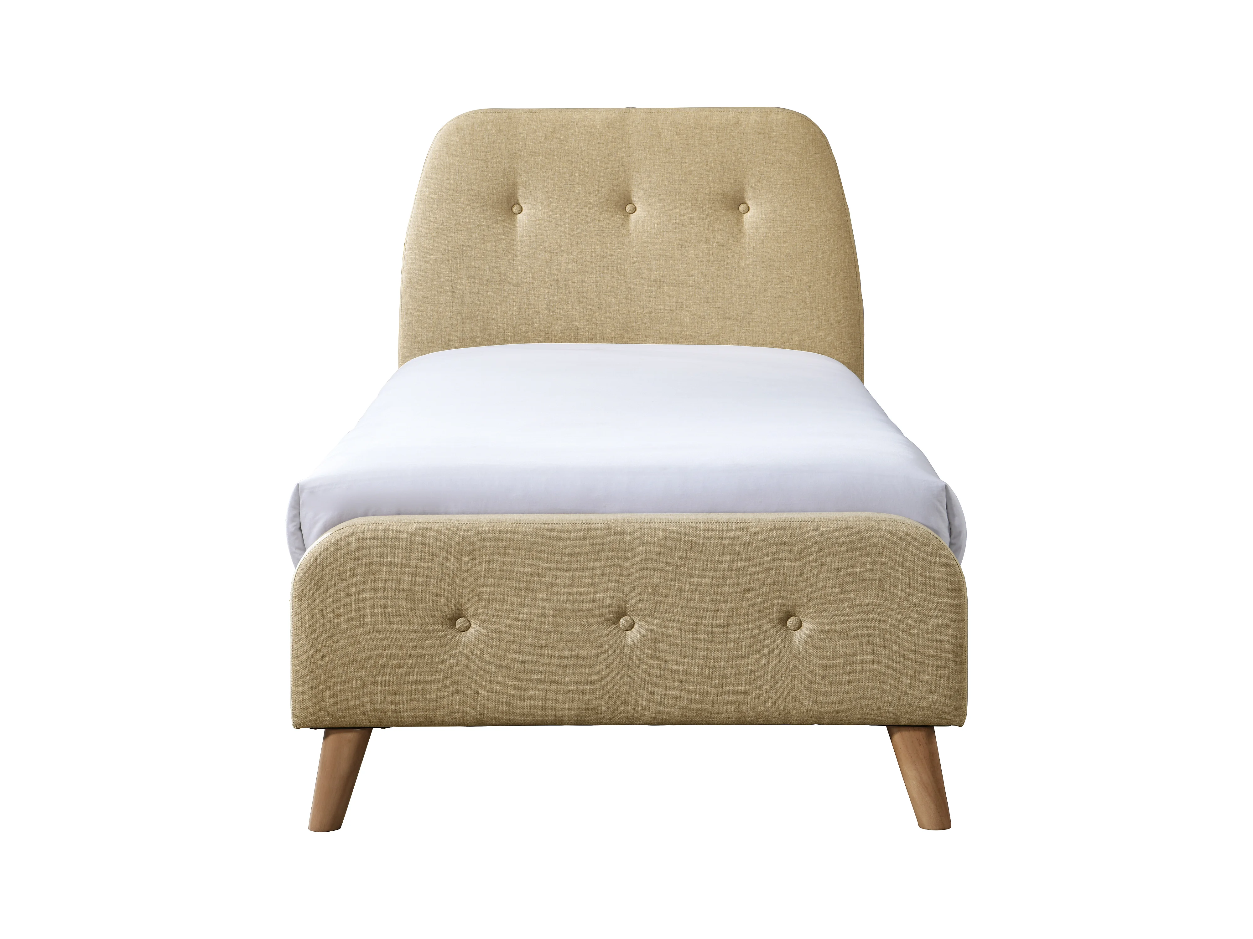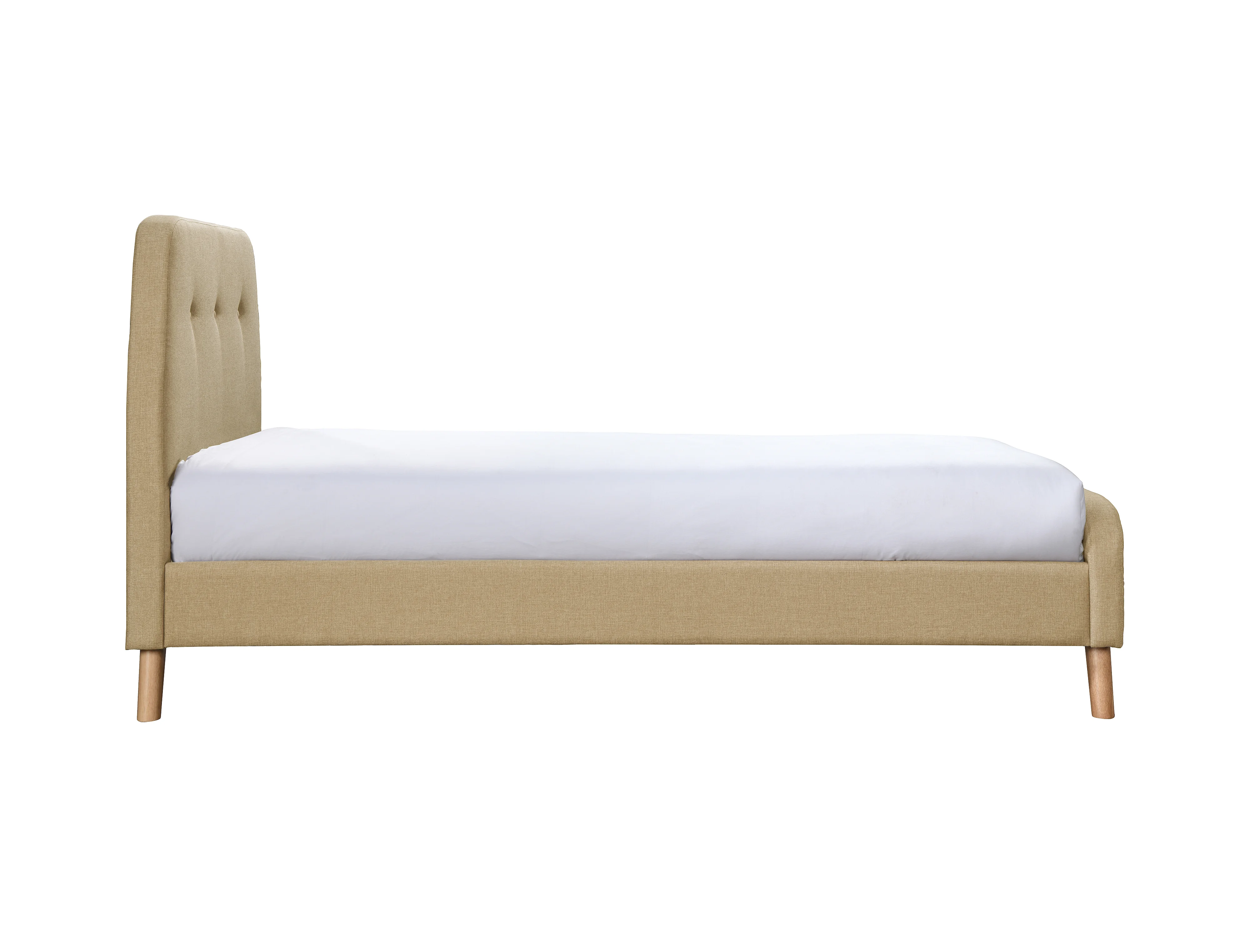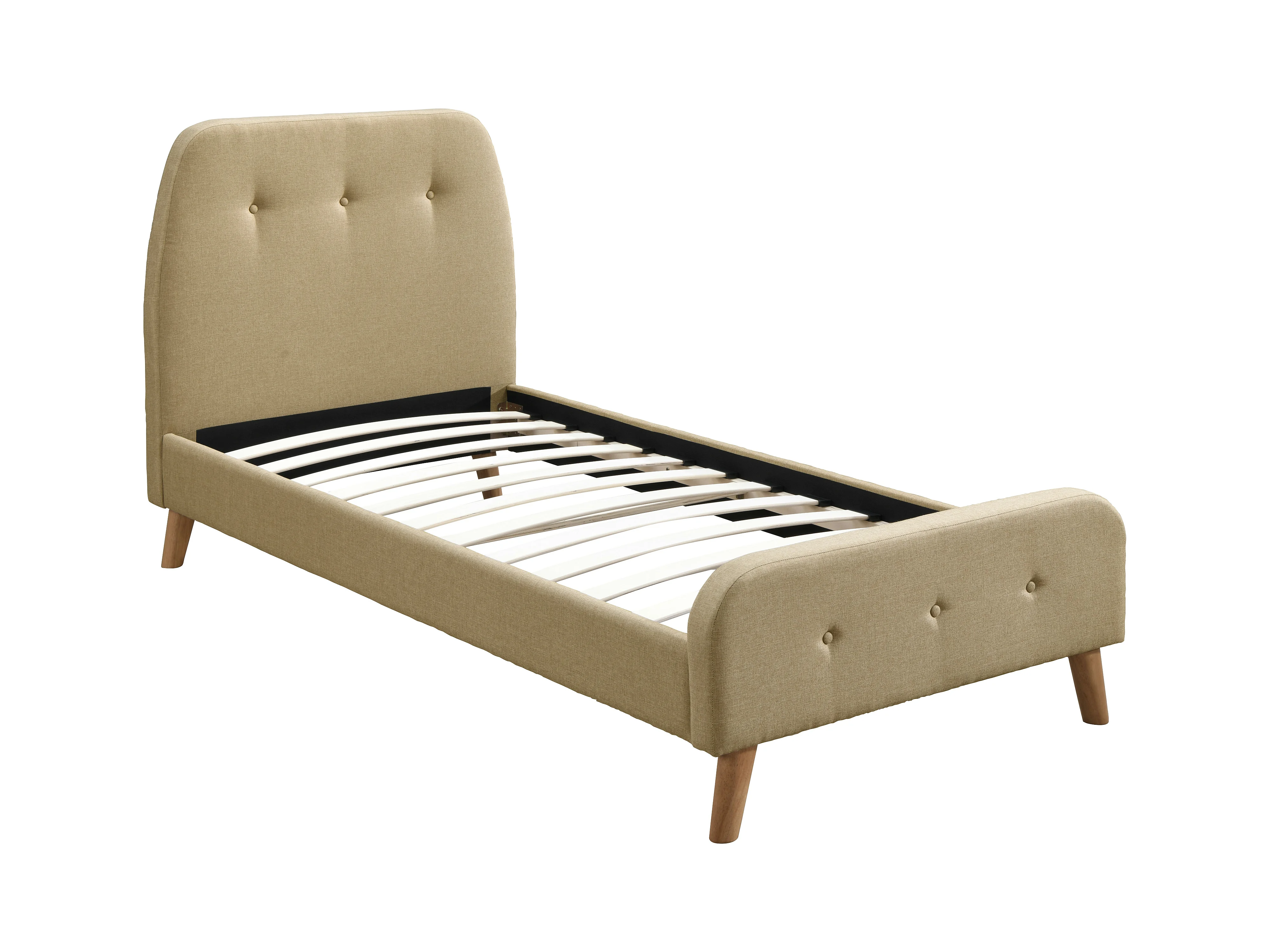Seng 90 x 190 cm med polstret sengegavl - Stof - Beige - ROMEO