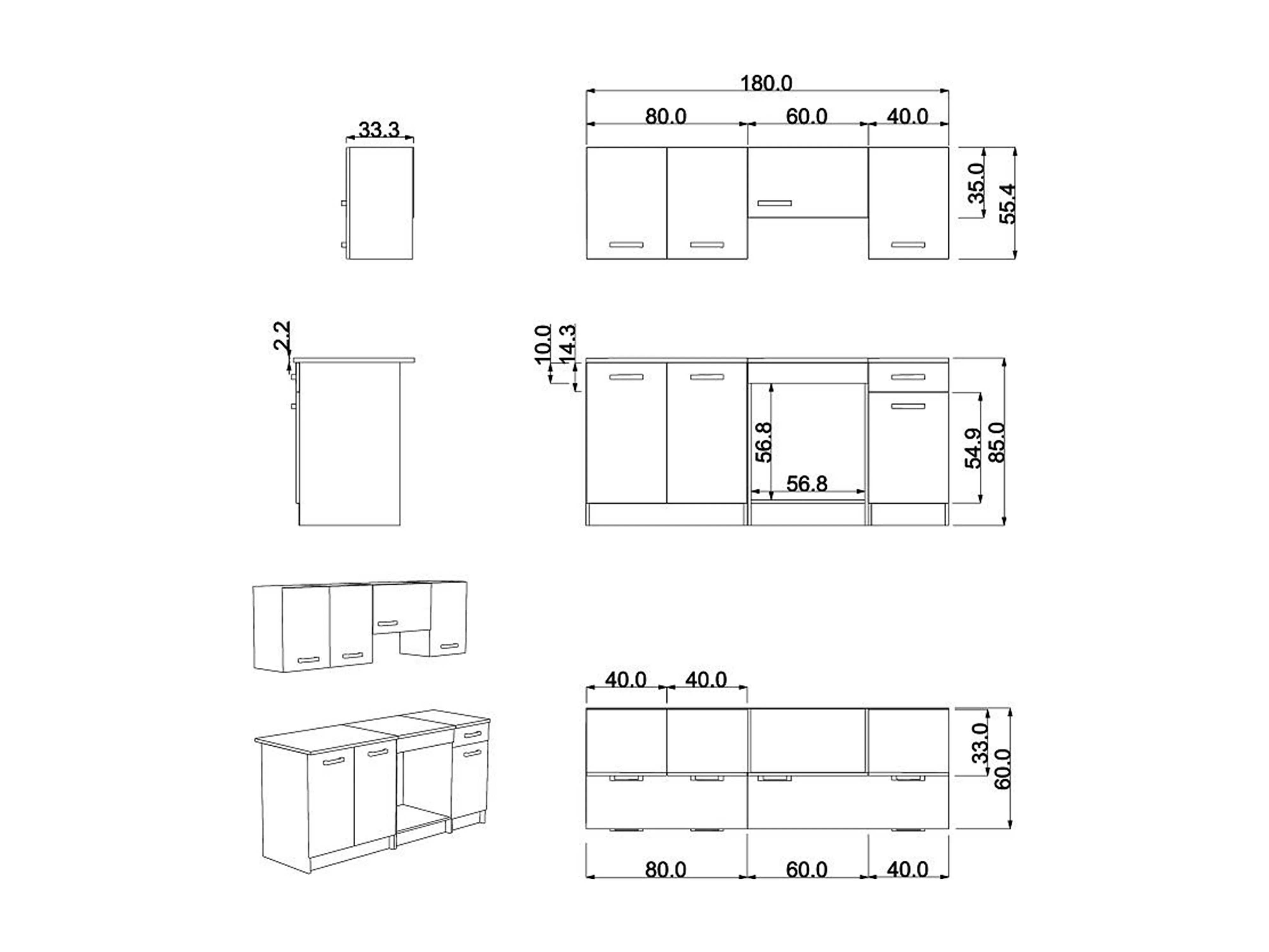 Komplet køkken - Med arbejdsbord 180 cm - Naturligt og Sort - TRATTORIA