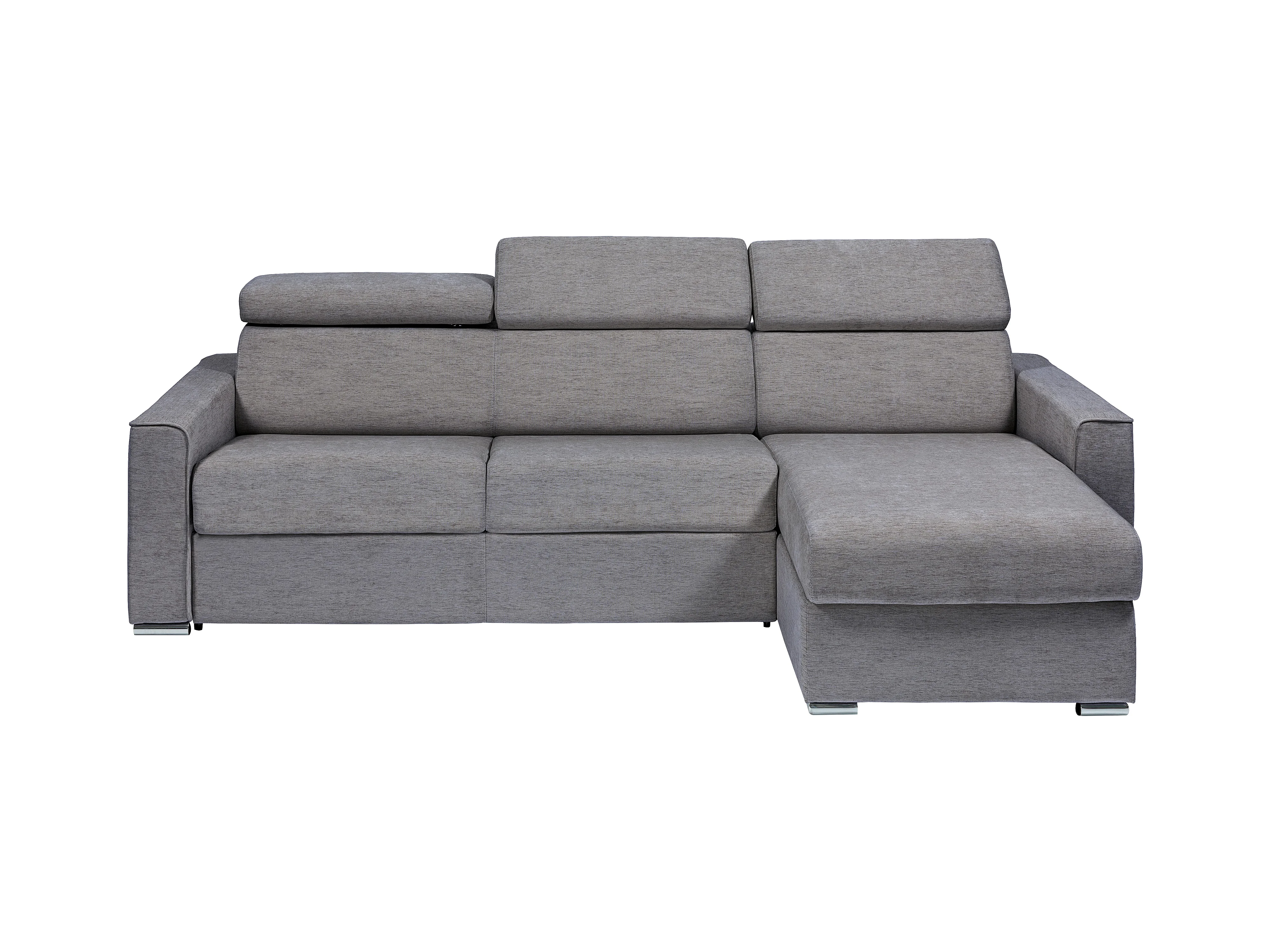 Vendbar hjørnesofa med ekspres-sovefunktion i gråt stof - 160 cm bred lamelbund - 22 cm memoryskum madras - VIZIR
