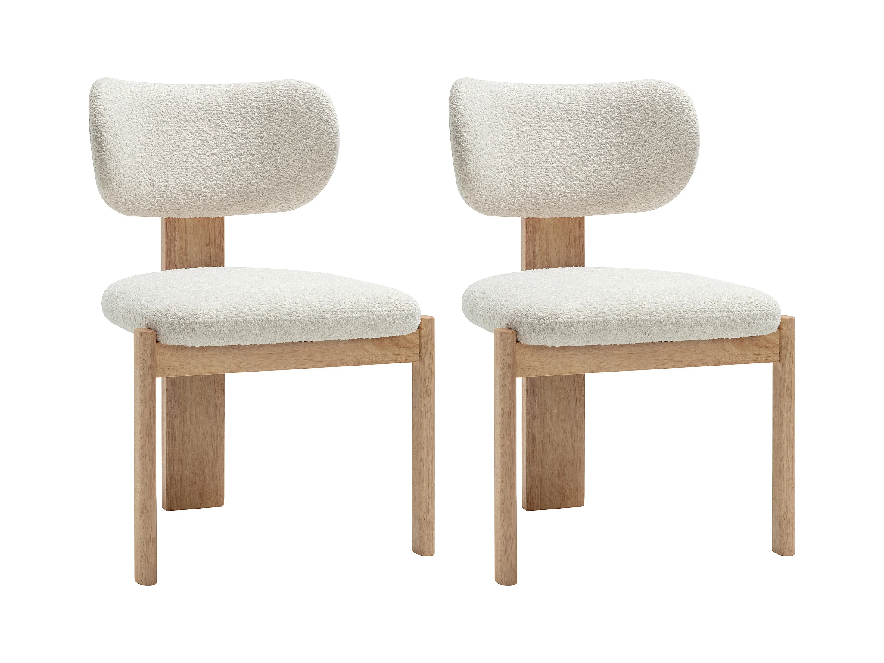 Sæt med 2 stole i bouclette stof og hvedetrærved træ - Hvid - WILANA