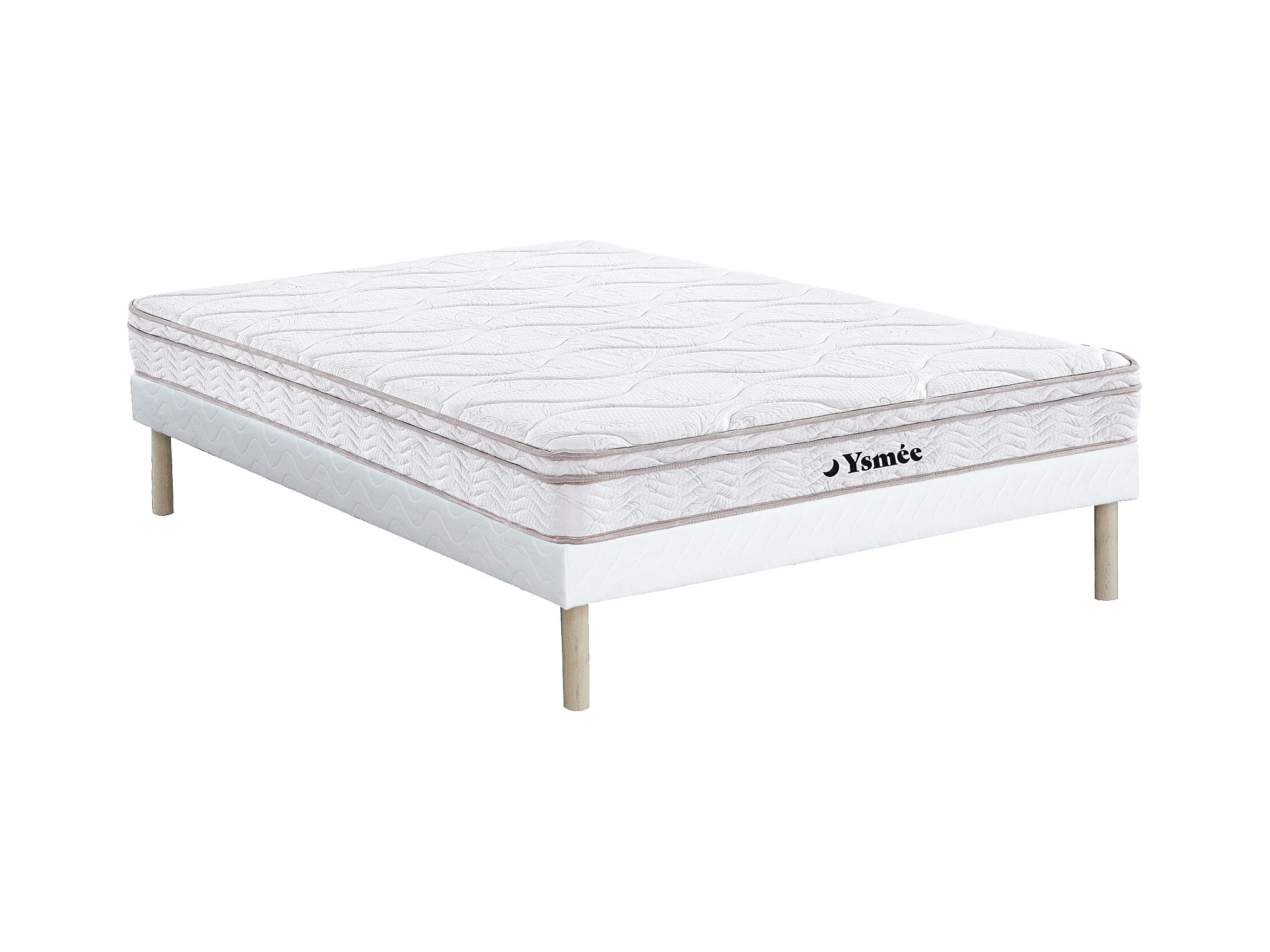Sæt 160 x 200 cm boxmadras + madras med 3-zoners fjedre og memory foam, 20 cm tykkelse - WOLKENTANZ fra YSMÉE