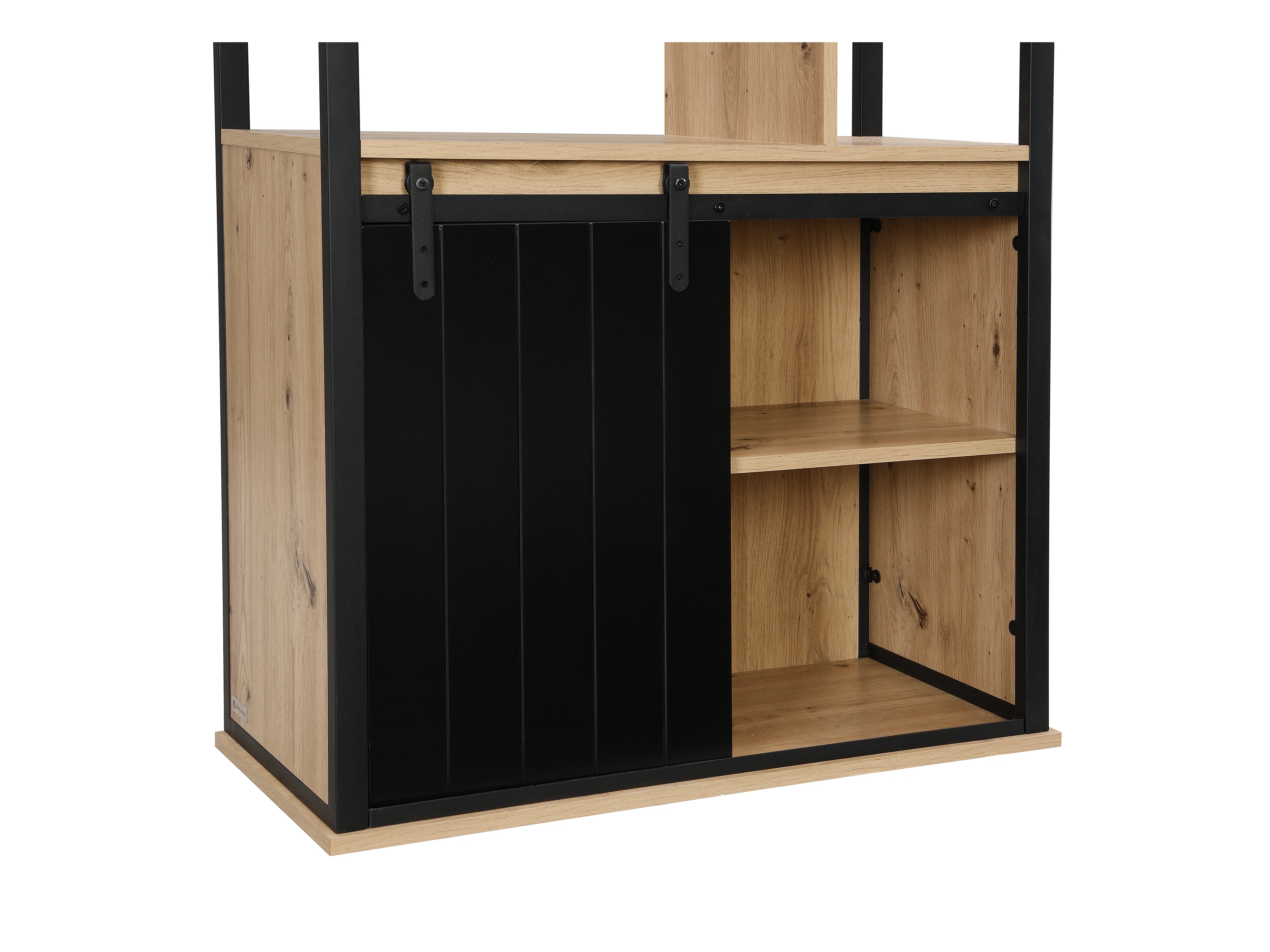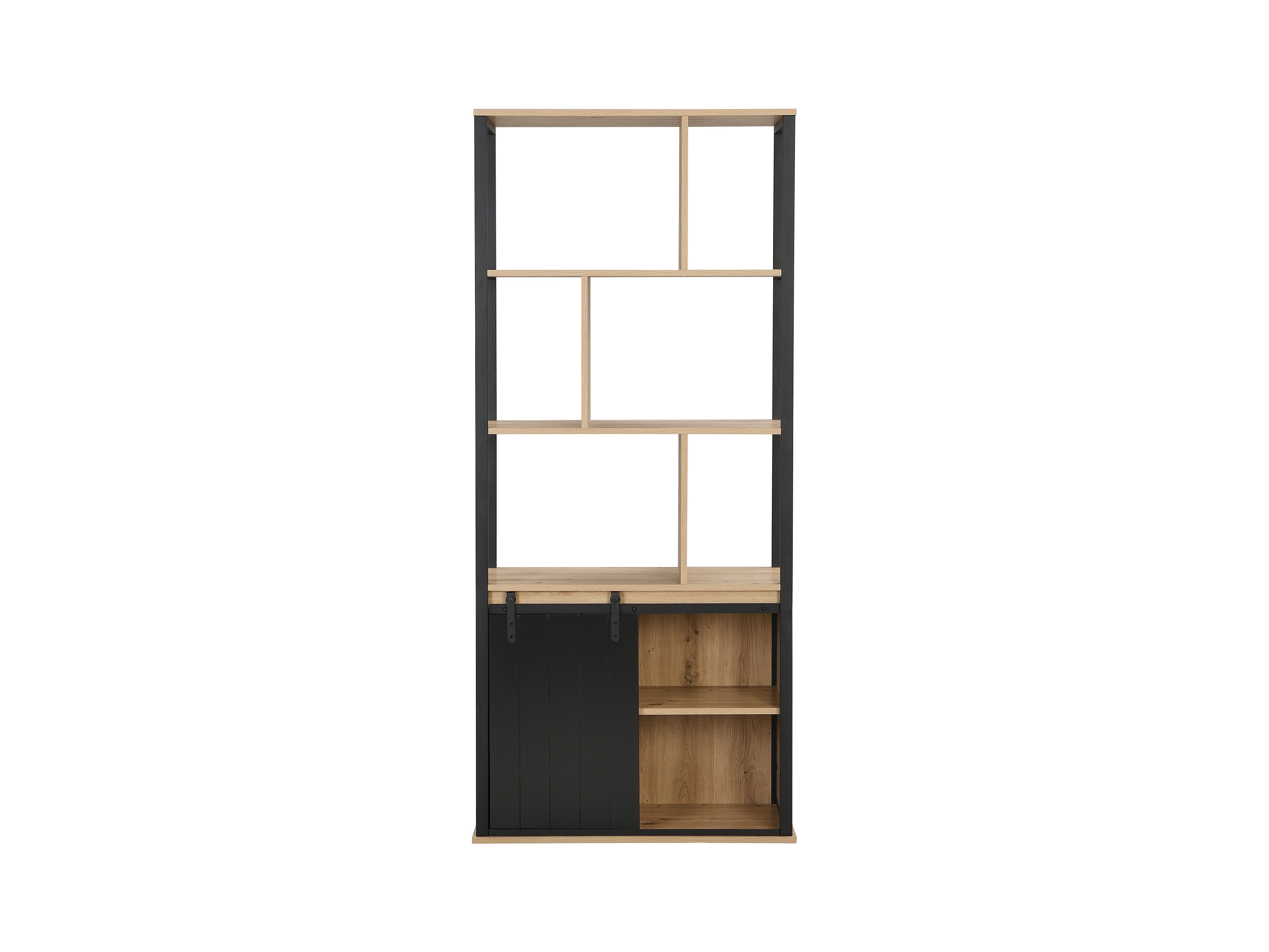 Bogreol med opbevaringshylder og 1 skydedør i MDF og stål - Naturlig og Sort - YALENA
