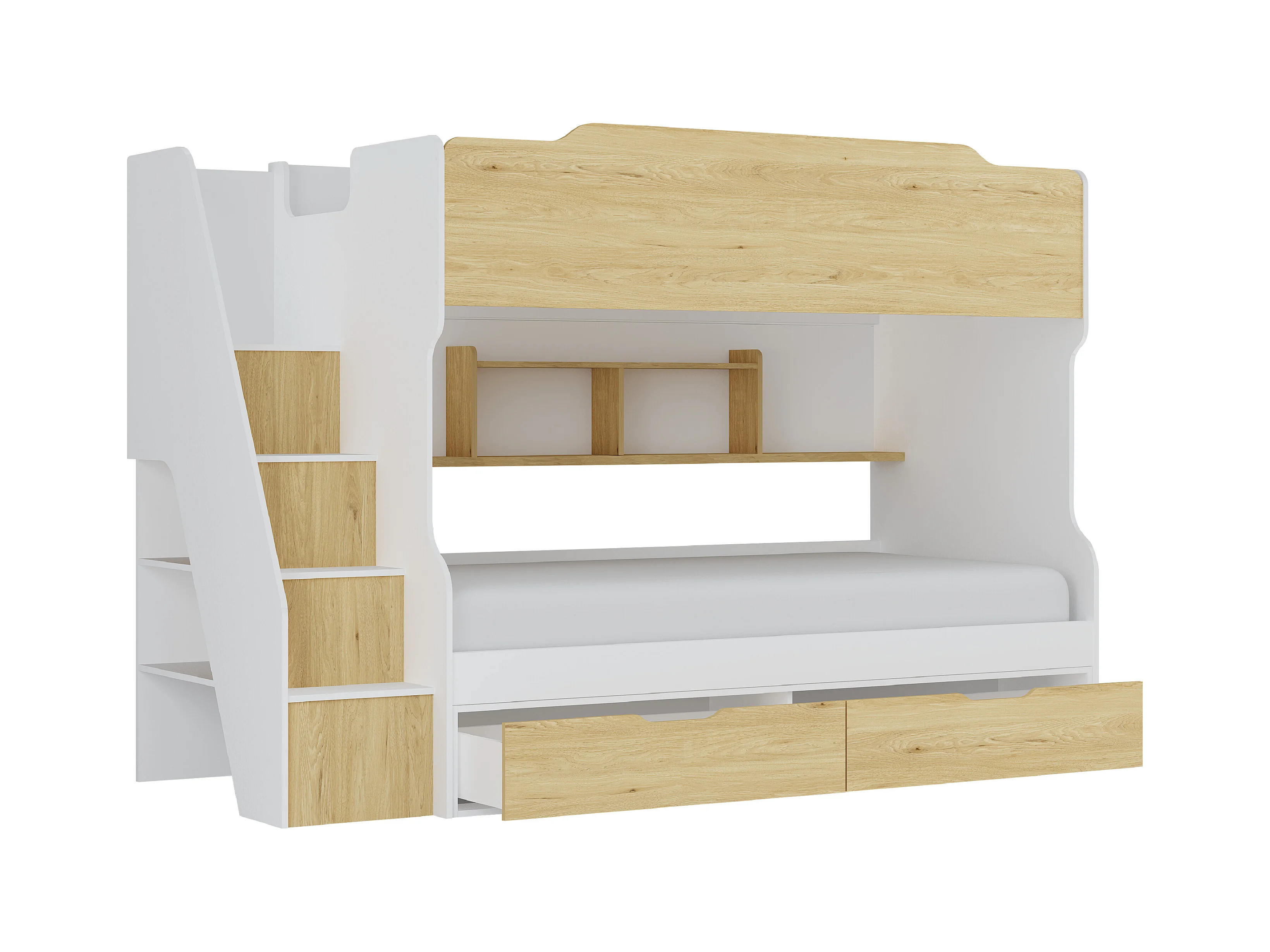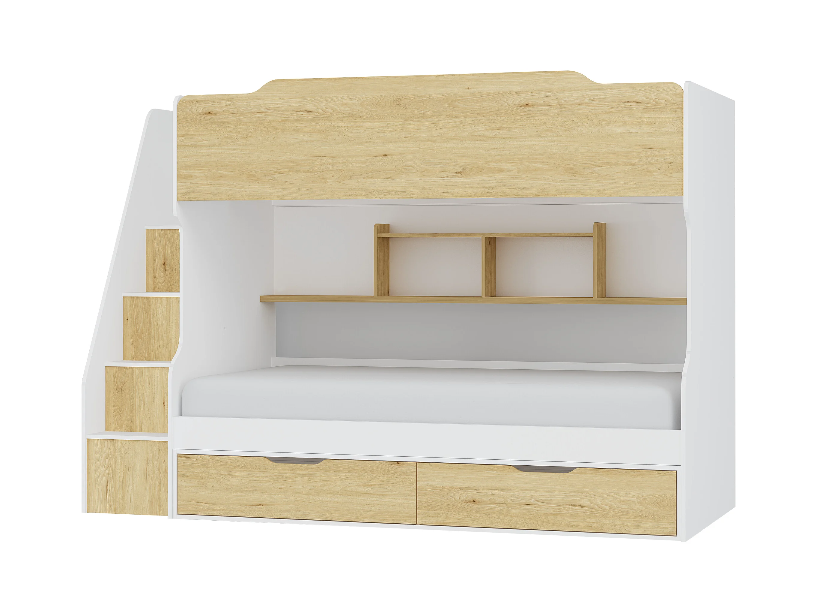 Etageseng 90 x 190 cm - Med opbevaringsplads - Hvid og naturlig + Madras - YALOVA